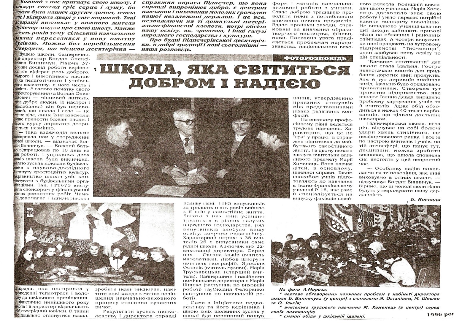 Підпечерівська ЗОШ І-ІІІ ступенів відкрилась в 1985 р.
